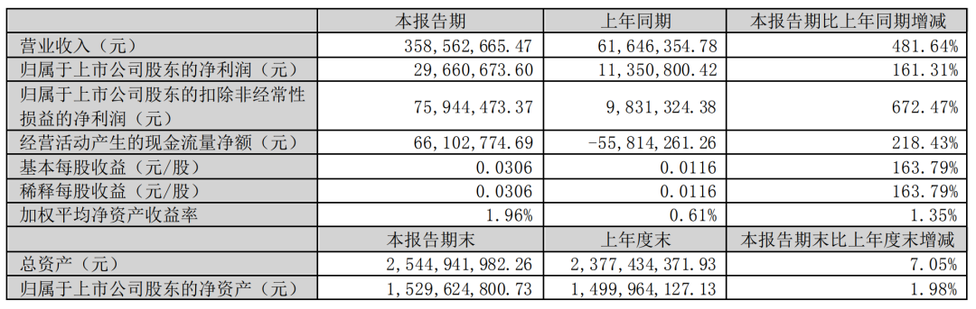 近日,歡瑞世紀發(fā)布2022年中財務(wù)報告,數(shù)據(jù)顯示,今年上半年,公司實現(xiàn)營收3.59億元,同比增長481.64%;歸屬于上市公司股東的凈利潤為2966萬,同比增長161.31%。