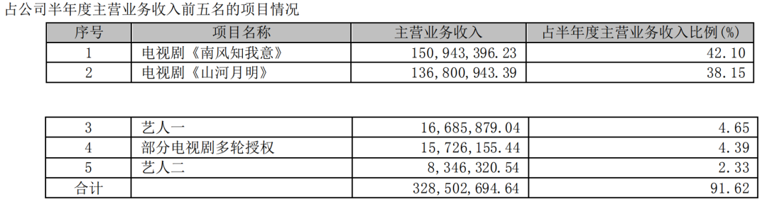 在這之中,驅(qū)動公司影視劇收入增長的主要是《南風知我意》《山河月明》兩部劇。財報數(shù)據(jù)顯示,報告期內(nèi),《南風知我意》貢獻營收1.51億,《山河月明》的營收則達到1.37億,兩部劇累計收入近3億。