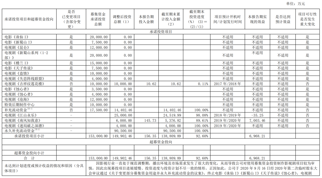 值得注意的是,歡瑞世紀在這些內(nèi)容中的參與方式多為聯(lián)合投資。而根據(jù)財報中披露的內(nèi)容,歡瑞世紀曾對公司募集資金的用途做出一次大幅度的調(diào)整,比如原定投資2億元的《誅仙Ⅰ》、和原定投資1.5億元的《樓蘭Ⅰ》等多部院線電影,后來相關(guān)項目都不再繼續(xù),從這一點來說,相較于大投資所承擔的高風險,攤薄風險的聯(lián)合投資似乎更符合歡瑞世紀當下的發(fā)展處境。