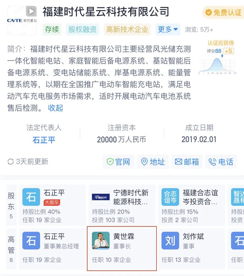 天眼查顯示,黃世霖在時代星云任董事長一職。第一財經(jīng)記者針對黃世霖是否會將事業(yè)重心轉移至時代星云的問題咨詢寧德時代,內部人士表示具體離職后情況需黃世霖本人回應。