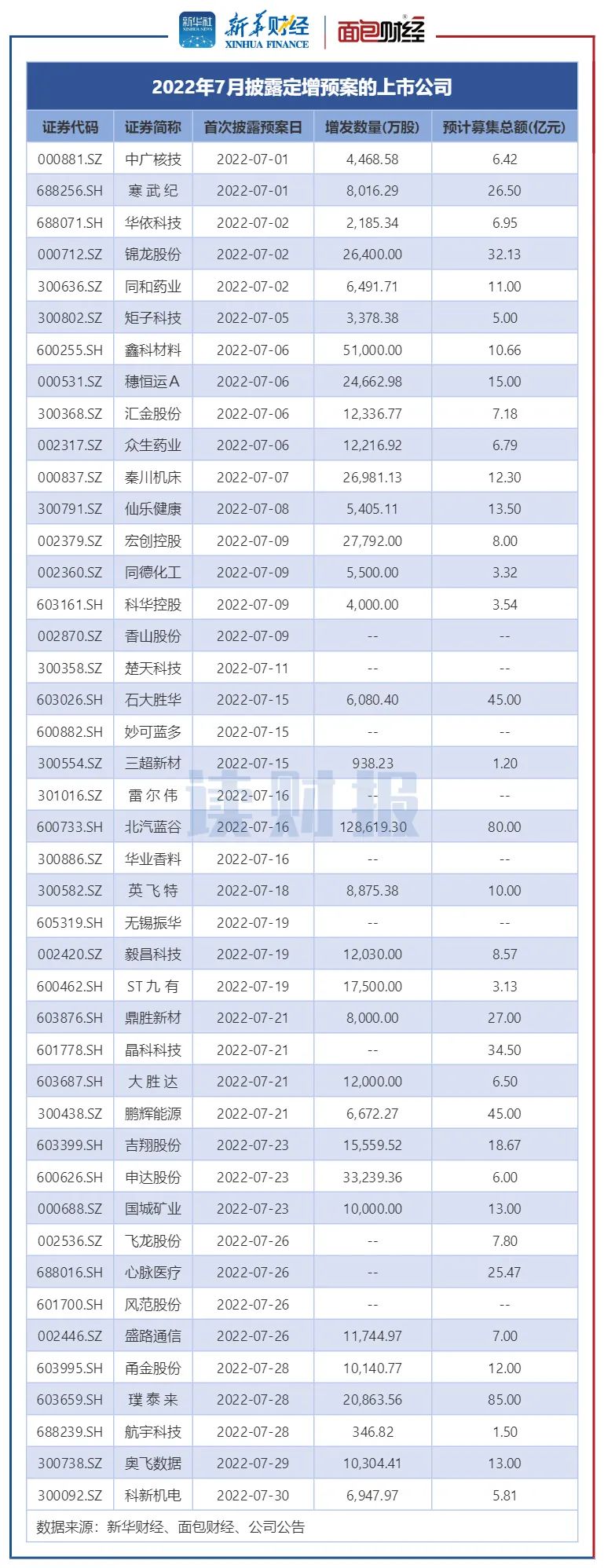 圖2:2022年7月實(shí)施定增的上市公司(按定增股份上市日統(tǒng)計(jì))