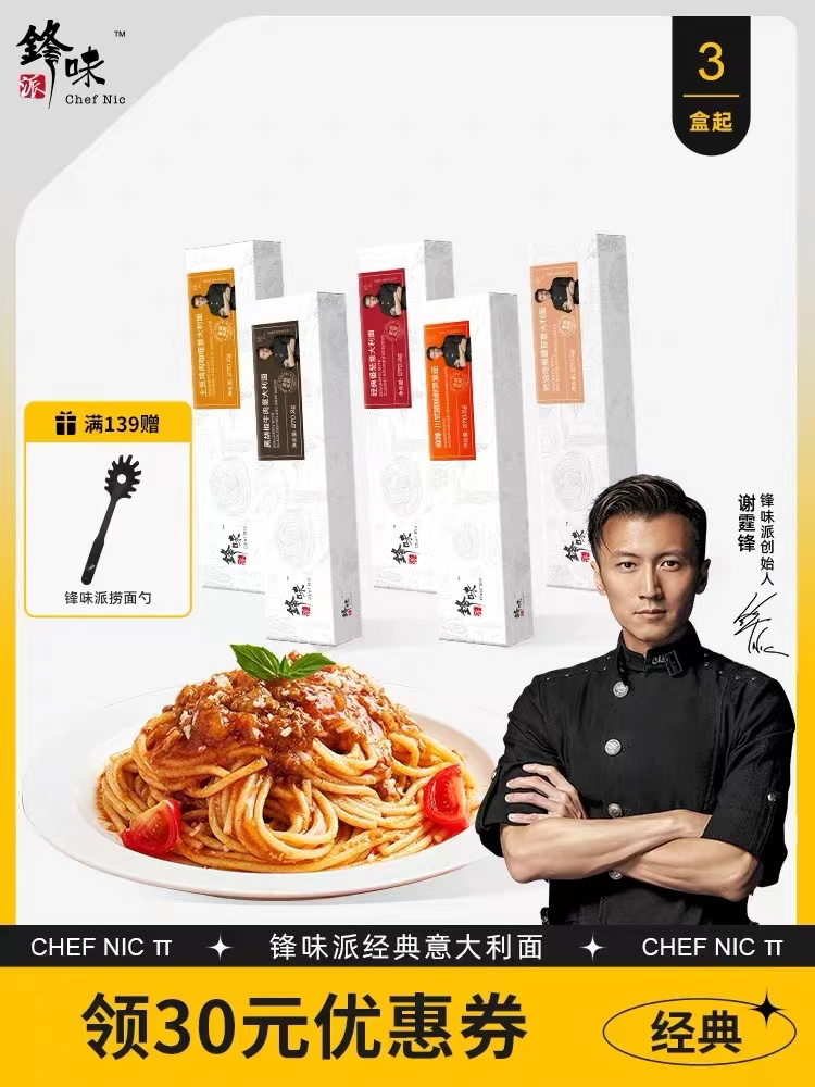 而近期“爆紅”的鋒味派,則是由知名藝人謝霆鋒聯(lián)手薇婭背后的謙尋共同打造,曾在直播間一場就賣爆60萬盒意面。