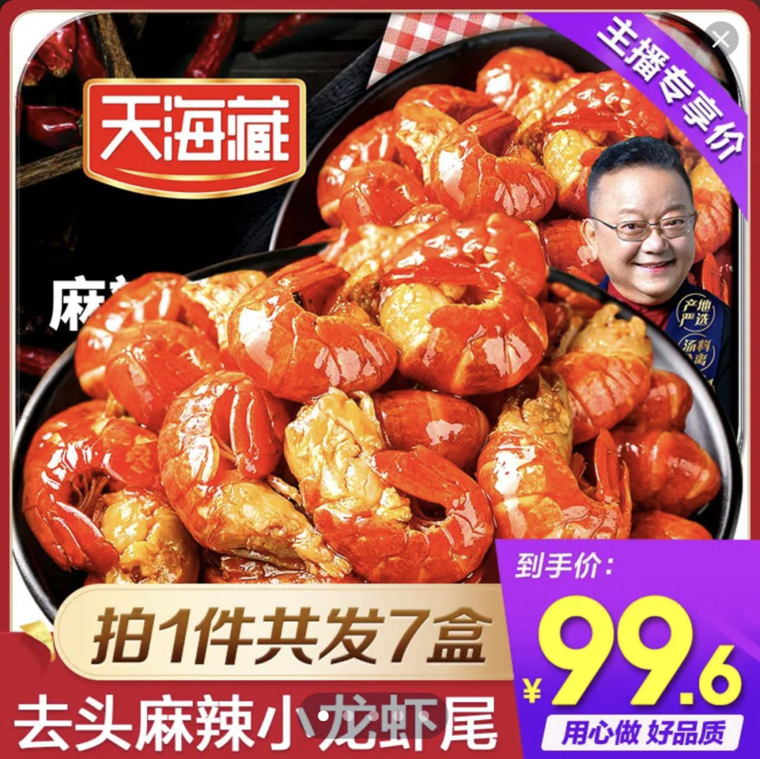 2020年直播電商興起,以生鮮賽道起家的天海藏就開啟了直播帶貨的道路,先后進(jìn)入薇婭、李佳琦、羅永浩、辛巴的直播間,逐步打開了直播市場和品牌知名度,之后延續(xù)“廣撒網(wǎng)”的打法,在淘、抖、快都建立了非常強(qiáng)大的主播合作網(wǎng)絡(luò),目前已合作超過5000位主播,覆蓋粉絲超過2億人,麻辣蝦尾、烤腸等預(yù)制菜商品成為各大電商平臺(tái)爆款。