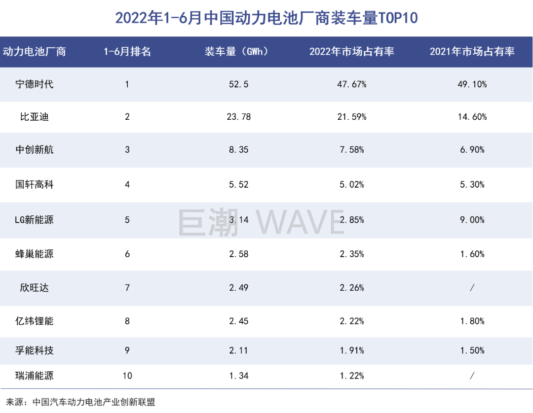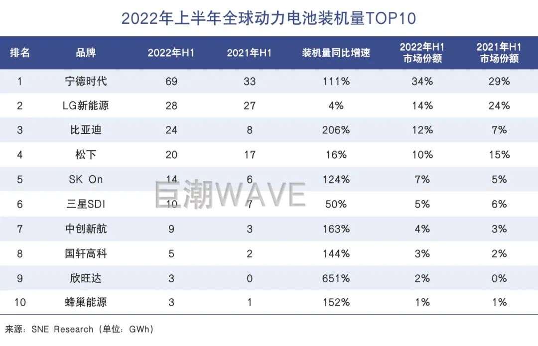 另一個可以提供佐證的事實是,LG新能源和松下在中國的市場份額已經(jīng)被國產(chǎn)企業(yè)所分食,本土品牌獲得絕對優(yōu)勢。根據(jù)最新數(shù)據(jù),上半年國內(nèi)裝機(jī)量排名前十的動力電池廠商中,只有LG新能源一家外資企業(yè),市占率為2.85%;而就在兩年前,兩家外資企業(yè)的市場份額還都在10%以上。