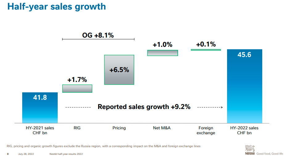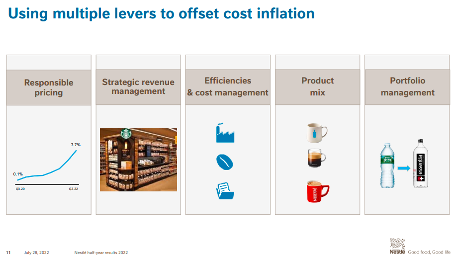 面對多位分析師問到雀巢接下來的定價策略時,施奈德談到,銷貨成本從去年下半年“像一列貨運列車一樣”沖擊著雀巢,今年上半年又繼續(xù)上漲,公司去年下半年開始的定價延續(xù)到今年上半年,使利潤率有所緩解。