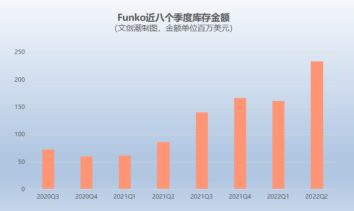 另一方面,F(xiàn)unko二季度的庫存從一季度的1.615億美元猛增到2.34億美元,增加了45%;相比去年二季度,同比增幅更是達(dá)到171%。