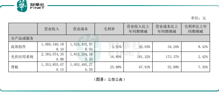 光伏應(yīng)用系統(tǒng)板塊業(yè)務(wù)已成為公司營收增長的主要驅(qū)動(dòng)力。2021年上半年,該業(yè)務(wù)收入21.84億元,同比增長181.32%,占比由去年同期的32.72%提升至47.09%。