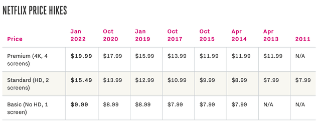 但從培養(yǎng)會(huì)員付費(fèi)再到接受會(huì)員漲價(jià),則要進(jìn)一步培養(yǎng)用戶新的認(rèn)知和習(xí)慣。Netflix和Disney+的故事在這個(gè)階段被反復(fù)提起:從2013年開(kāi)始,Netflix進(jìn)行了六次漲價(jià),標(biāo)準(zhǔn)會(huì)員價(jià)格從7.99美元漲到了15.49美元,幾乎翻了一番。
