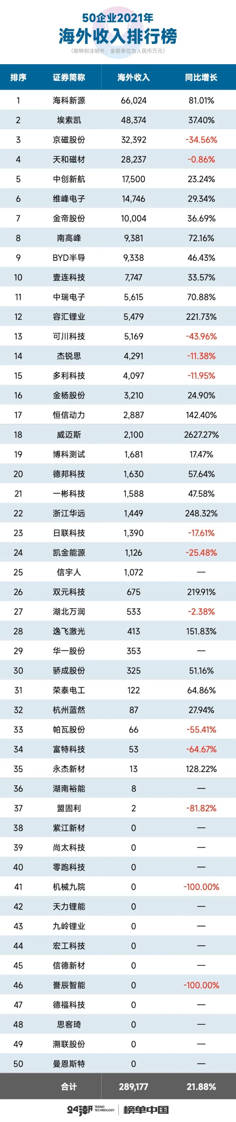 不過,筆者統(tǒng)計(jì)數(shù)據(jù)發(fā)現(xiàn),這50家企業(yè)收入主要還是來自國內(nèi),海外擴(kuò)張不盡如意。比如2021年這50家企業(yè)海外收入合計(jì)約為28.92億元,僅同比增長(zhǎng)21.88%,占營業(yè)收入比例僅為3.75%。