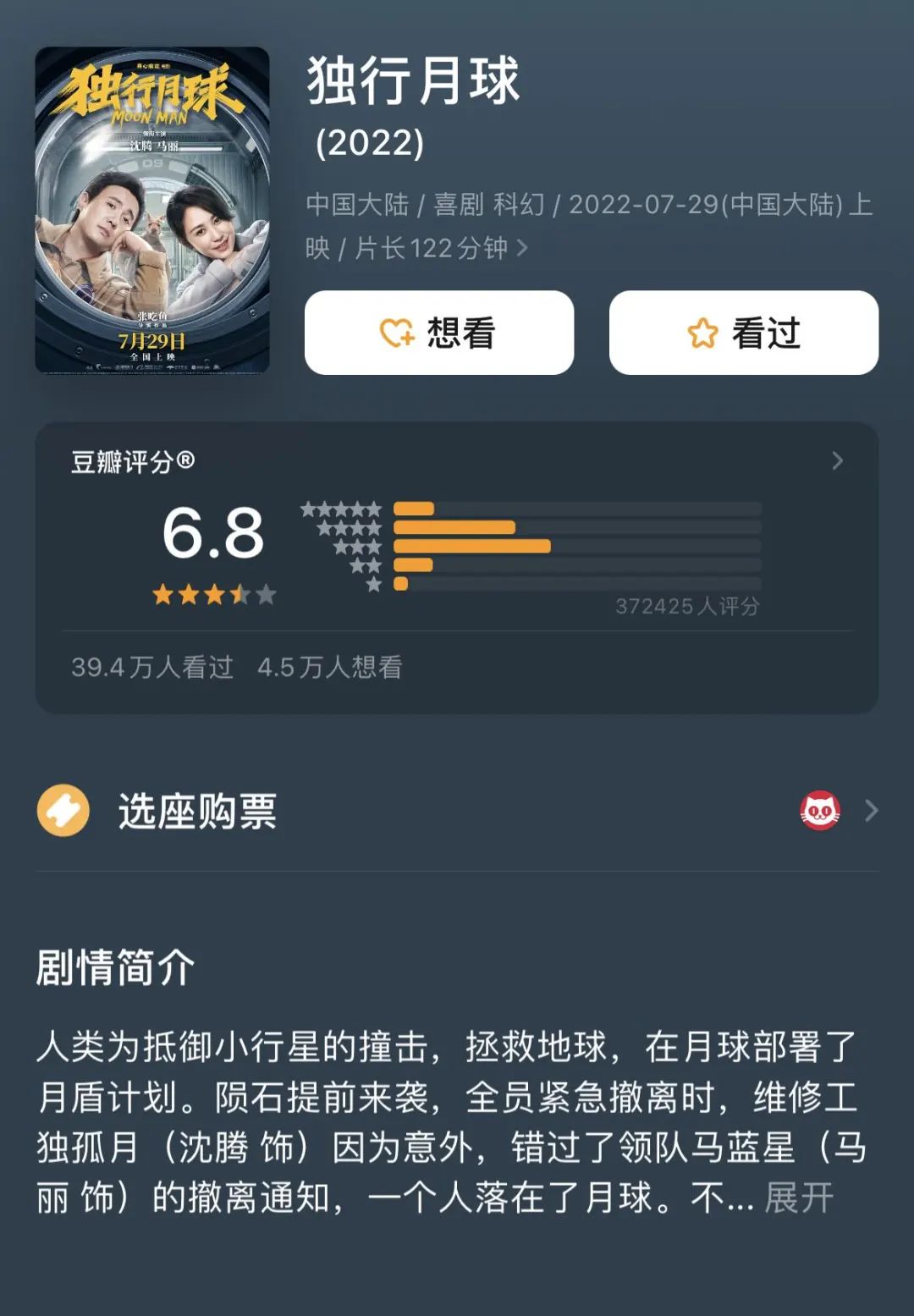 不過(guò),在票房一路高歌猛進(jìn)的同時(shí),《獨(dú)行月球》的豆瓣評(píng)分卻跌至開(kāi)分以來(lái)的新低,這部既不喜劇也不科幻,硬塞“煽情?!钡钠礈愂诫娪?,讓好看與難看兩種評(píng)價(jià)呈現(xiàn)不可調(diào)和的兩極分化態(tài)勢(shì)。