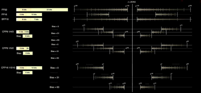 D1核心具備FP32和FP16這兩個標準的計算格式,同時還具備更適合Inference的BFP16格式。為了達到混合精度計算提升性能的目的,D1還采用了用于較低精度和更高吞吐量的 8 位 CFP8 格式。Dojo 編譯器可以在尾數(shù)精度附近滑動,以涵蓋更廣泛的范圍和精度。在任何給定時間,最多可以使用 16 種不同的矢量格式,靈活提升算力。