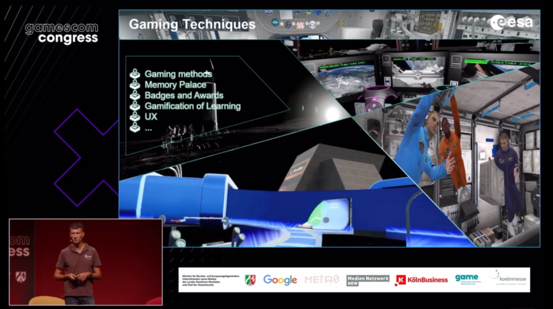 在航天領(lǐng)域,歐洲空間局(ESA)將游戲技術(shù)應(yīng)用于太空探索:從2017年開始,他們尋求了大量游戲公司的幫助,通過照片掃描和游戲引擎渲染技術(shù)1:1還原月球表面、創(chuàng)造高度沉浸的環(huán)境,并通過游戲任務(wù)“記憶宮殿”的模式訓(xùn)練宇航員太空行走和駕駛,以解決現(xiàn)實(shí)世界中訓(xùn)練成本高、場(chǎng)景局限性等難題。目前,游戲技術(shù)也正在幫助ESA設(shè)計(jì)下一代的新型太空艙。