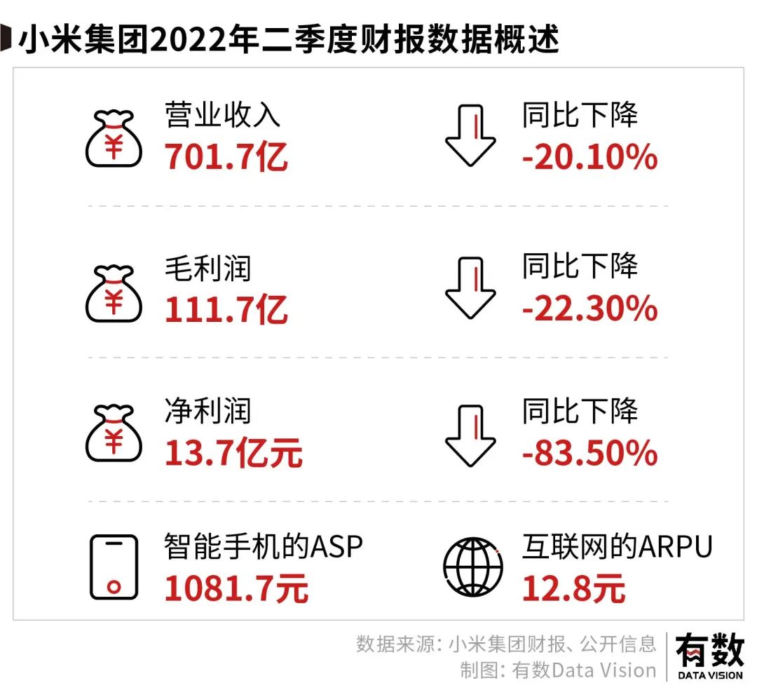 畢竟在8月19日發(fā)布的小米財報中,今年上半年,小米凈利潤同比降幅高達83.5%,手機銷量連續(xù)兩季度同比下滑超20%。