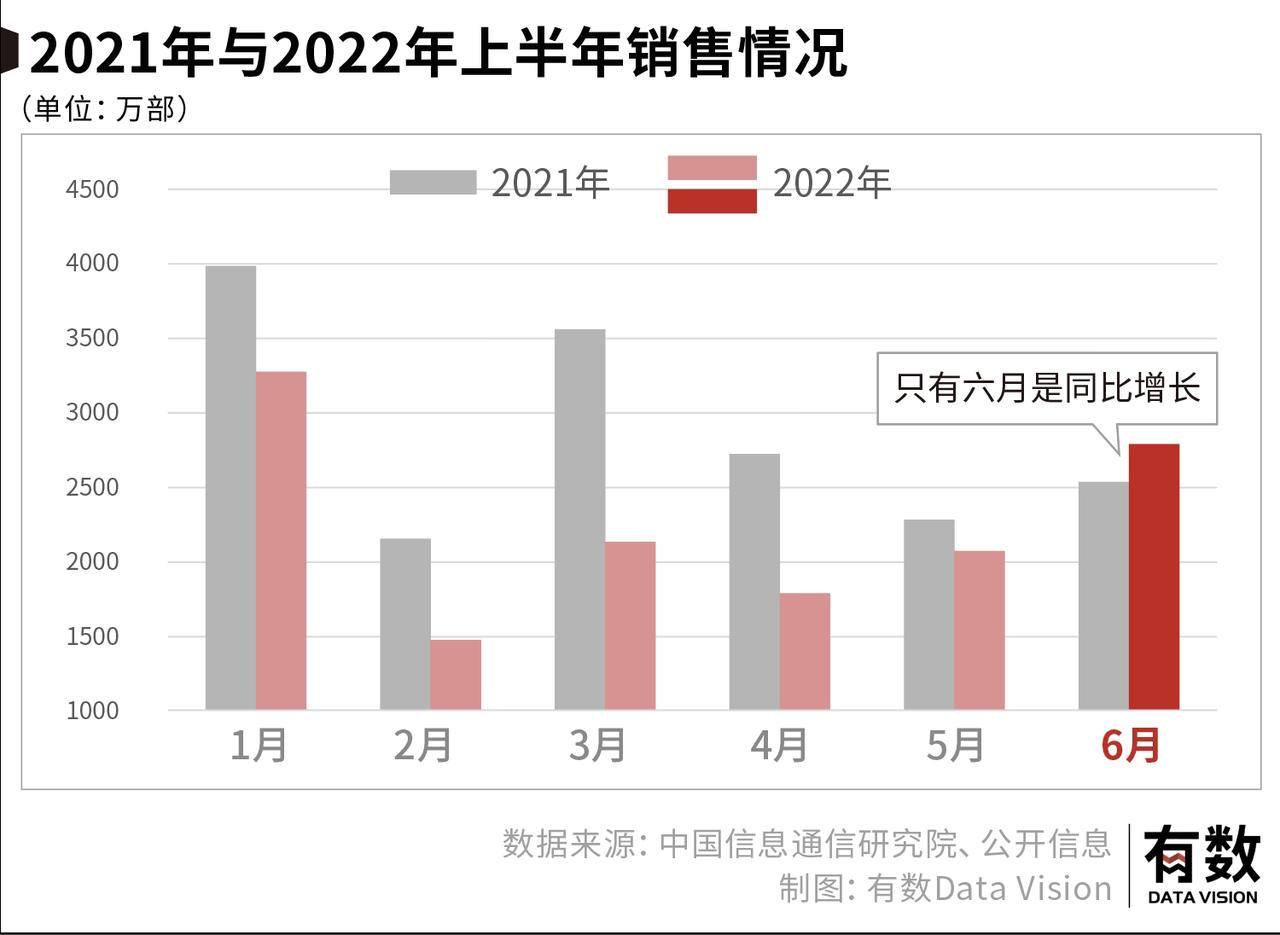 與之相對的,是今年上半年國內(nèi)手機出貨量為1.36億部,同比下降21.7%。