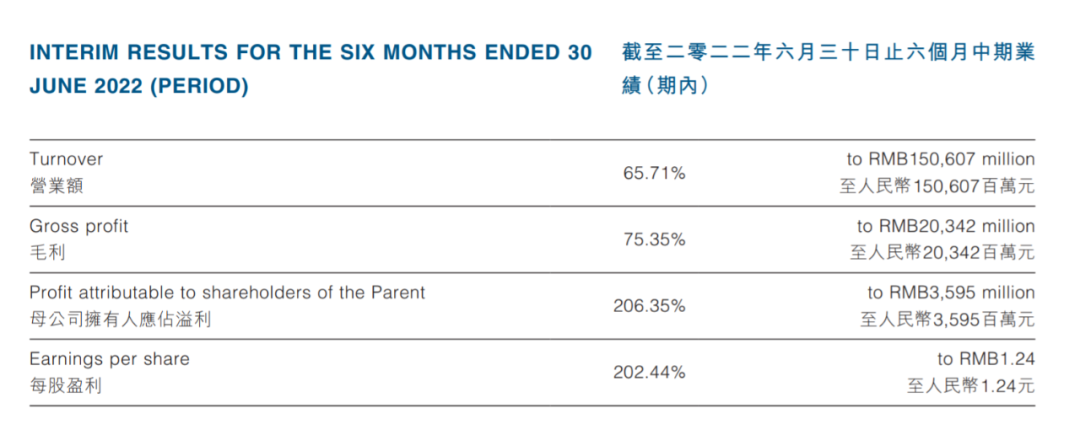 比亞迪2022年上半年關(guān)鍵業(yè)務(wù)指標(biāo)增長情況,圖片來源:比亞迪H股公告
