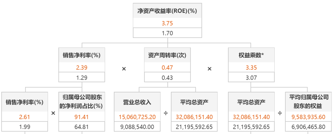 比亞迪2022中報杜邦分析(紅字)及去年同期對比(黑字)