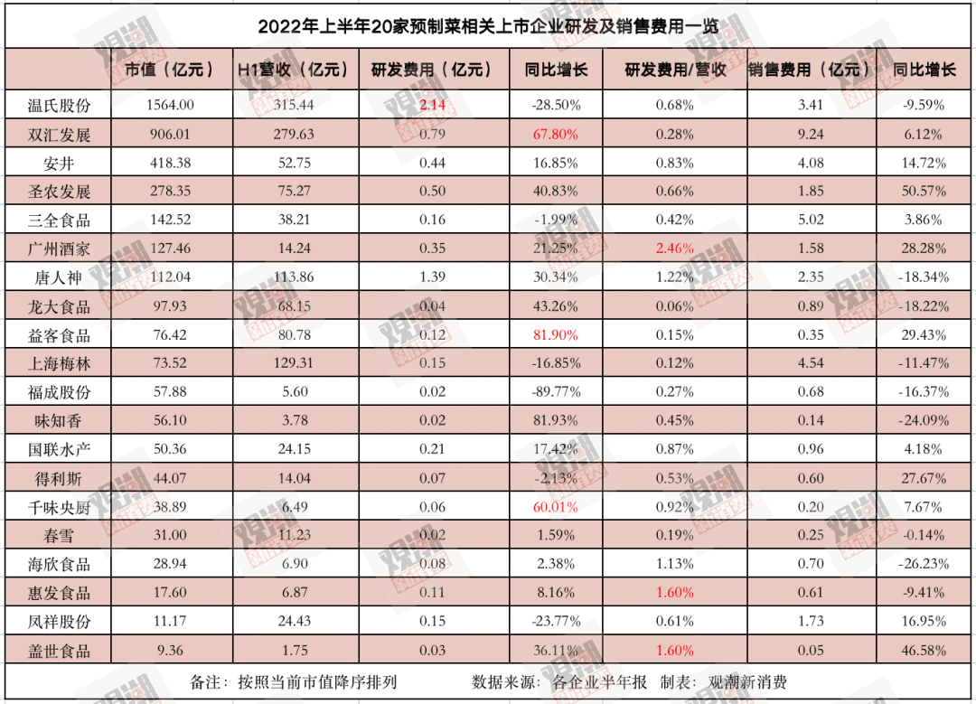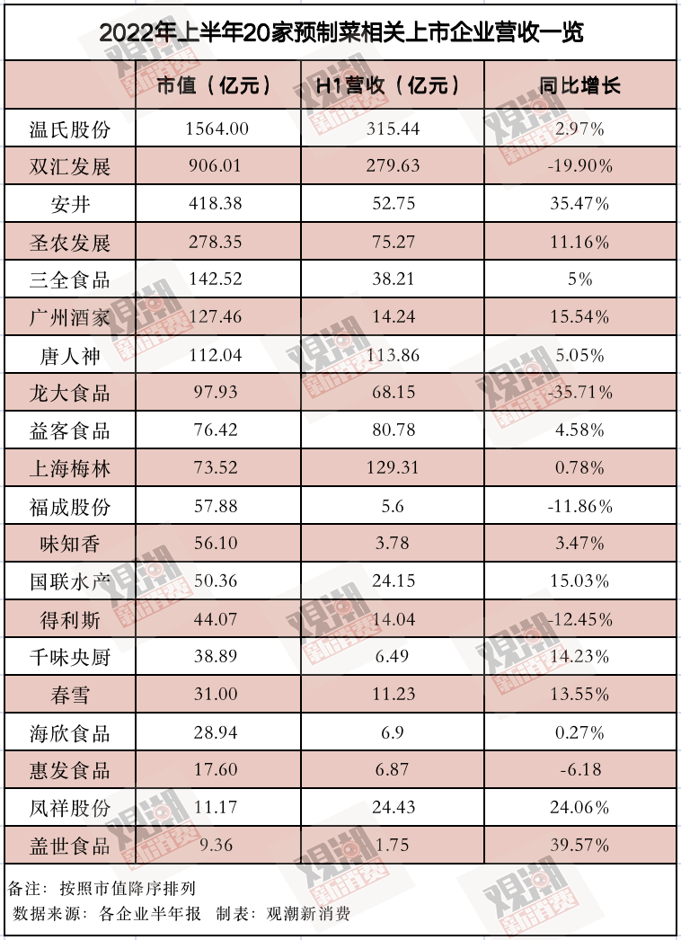 然而,隨著近日安井、三全、知味香等預制菜上市公司發(fā)布半年報,觀潮新消費梳理了20家具有代表性的預制菜相關(guān)上市公司數(shù)據(jù),發(fā)現(xiàn)這個誘人的巨大市場,并不像看上去那么美,甚至非常殘酷。