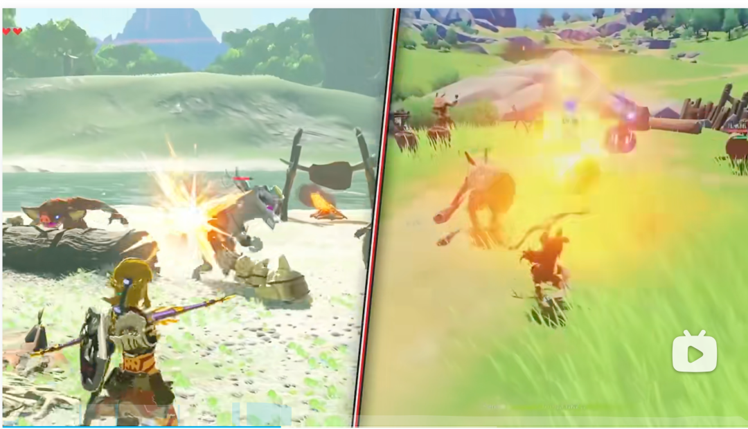 而在之后的視頻中,宣傳PV關(guān)于游戲玩法的展示,更是多處和《塞爾達(dá)傳說:荒野之息》撞車,除了常規(guī)的爬墻游泳之外,諸如可以展示類似的“林克時(shí)間”及用火焰制造上升氣流等玩法都與塞爾達(dá)游戲中的內(nèi)容頗為相似。
