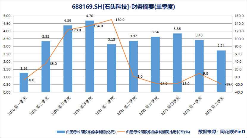 分季度來看,2022年第二季度,石頭科技實現(xiàn)凈利潤2.74億元,同比下滑18.66%,創(chuàng)下公司自上市以來的最大季度降幅紀錄;而從環(huán)比來看,這是石頭科技自去年第四季度以來,連續(xù)第三個季度凈利潤出現(xiàn)環(huán)比下滑。