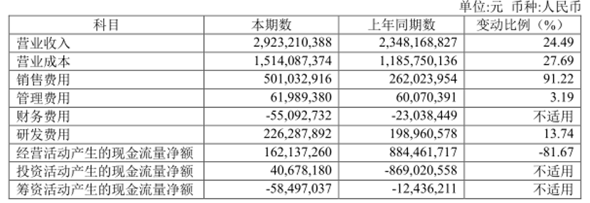 除了毛利率下滑之外,銷售費用的增長成為石頭科技增收不增利的另一個主要原因。今年上半年,石頭科技銷售費用支出達到5.01億元,較去年同期(2.62億元)增長2.39億元,同比增幅為91%,銷售費用率達到17.14%,同比提升4.7個百分點。