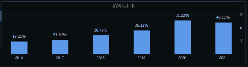 值得注意的是,隨著小米代工業(yè)務(wù)占比的快速下滑,石頭科技已經(jīng)很難通過收入結(jié)構(gòu)的調(diào)整來實現(xiàn)毛利率的提升。2021年,公司毛利率為48.11%,同比下滑3.21個百分點。