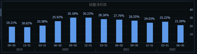 毛利率下滑而銷售費用率提升,自然導(dǎo)致公司銷售凈利率的下滑。2022年上半年,石頭科技銷售凈利率為21.09%,較巔峰時期下滑了近10個百分點。