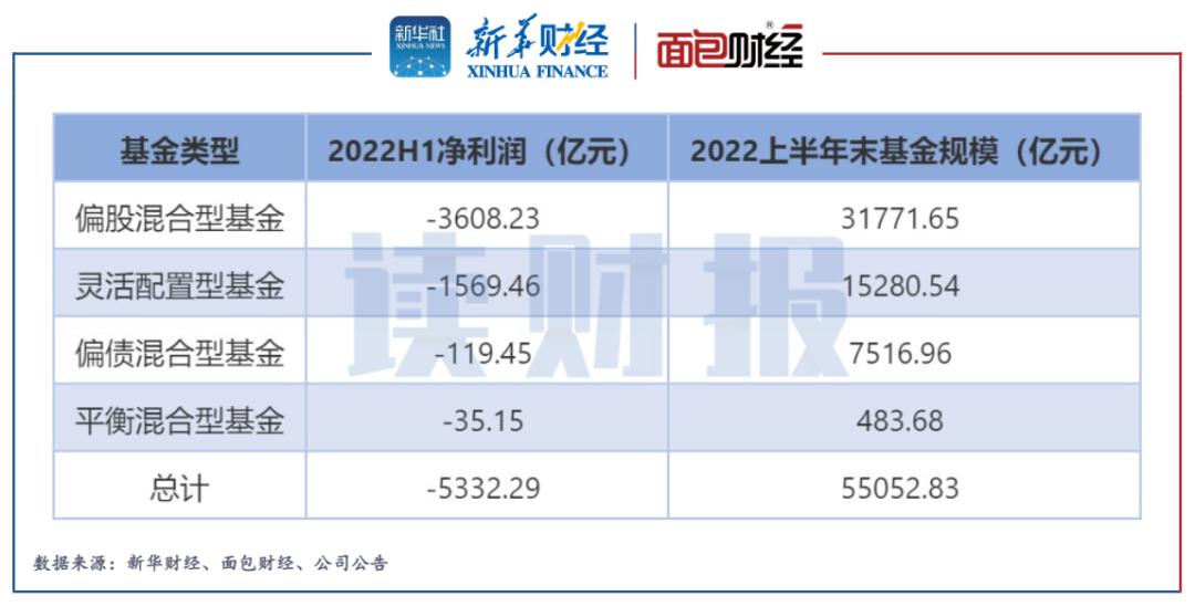 2022年上半年,公募混合型產(chǎn)品盈虧相抵之后凈利潤合計虧損較大,其中偏股混合型、靈活配置型基金虧損較多。