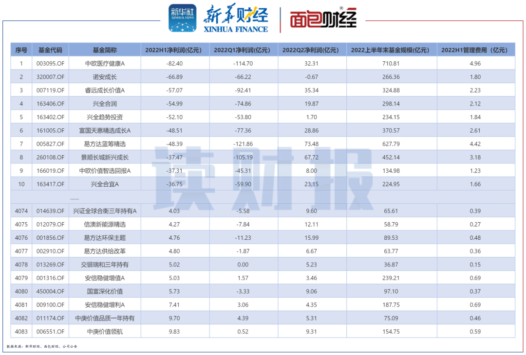 從基金產(chǎn)品上看,中歐醫(yī)療健康混合以82.4億元凈利潤虧損排在虧損榜榜首,諾安成長、睿遠(yuǎn)成長價值混合、興全合潤混合等基金上半年虧損金額也均超過50億元。