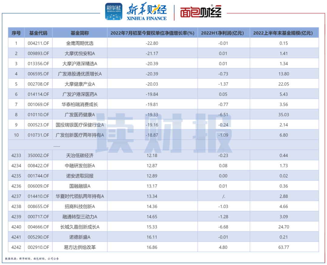 2022年7月初至今,超過7成的混合型基金復(fù)權(quán)單位凈值下跌,其中有5只產(chǎn)品跌幅超過20%。