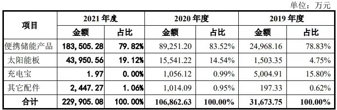 具體業(yè)務來看,華寶新能目前的主營業(yè)務可分為四大項:便攜儲能產(chǎn)品、太陽能板、充電寶與其他配件。其中,華寶能源近三年的飛速增長,離不開便攜式儲能產(chǎn)品的放量帶動。