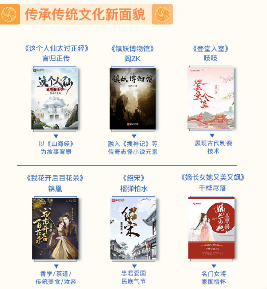 第二大風尚是,傳統文化成為網文創(chuàng)作的熱門元素。