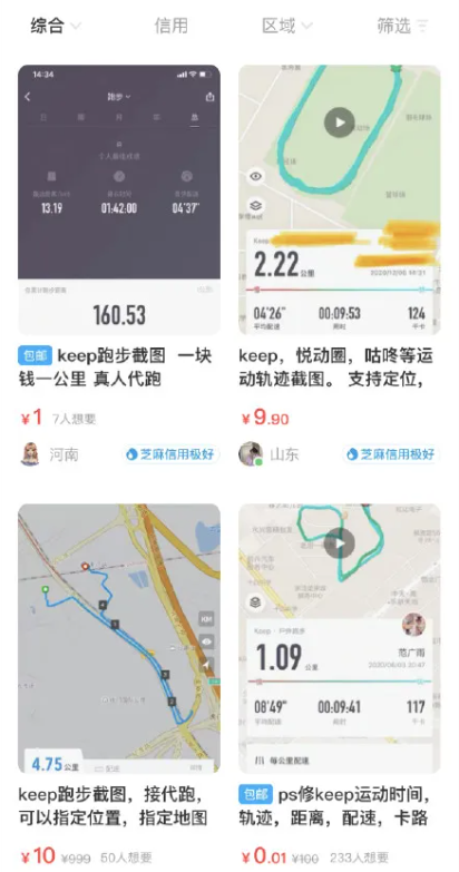 “我在KEEP、咕咚、宥馬、悅跑圈、悅動(dòng)圈、咪咕善跑、暢動(dòng)力、樂動(dòng)力等平臺(tái),都有跑單生意。”顧鑫稱,他還專門雇人去打理這些事情。