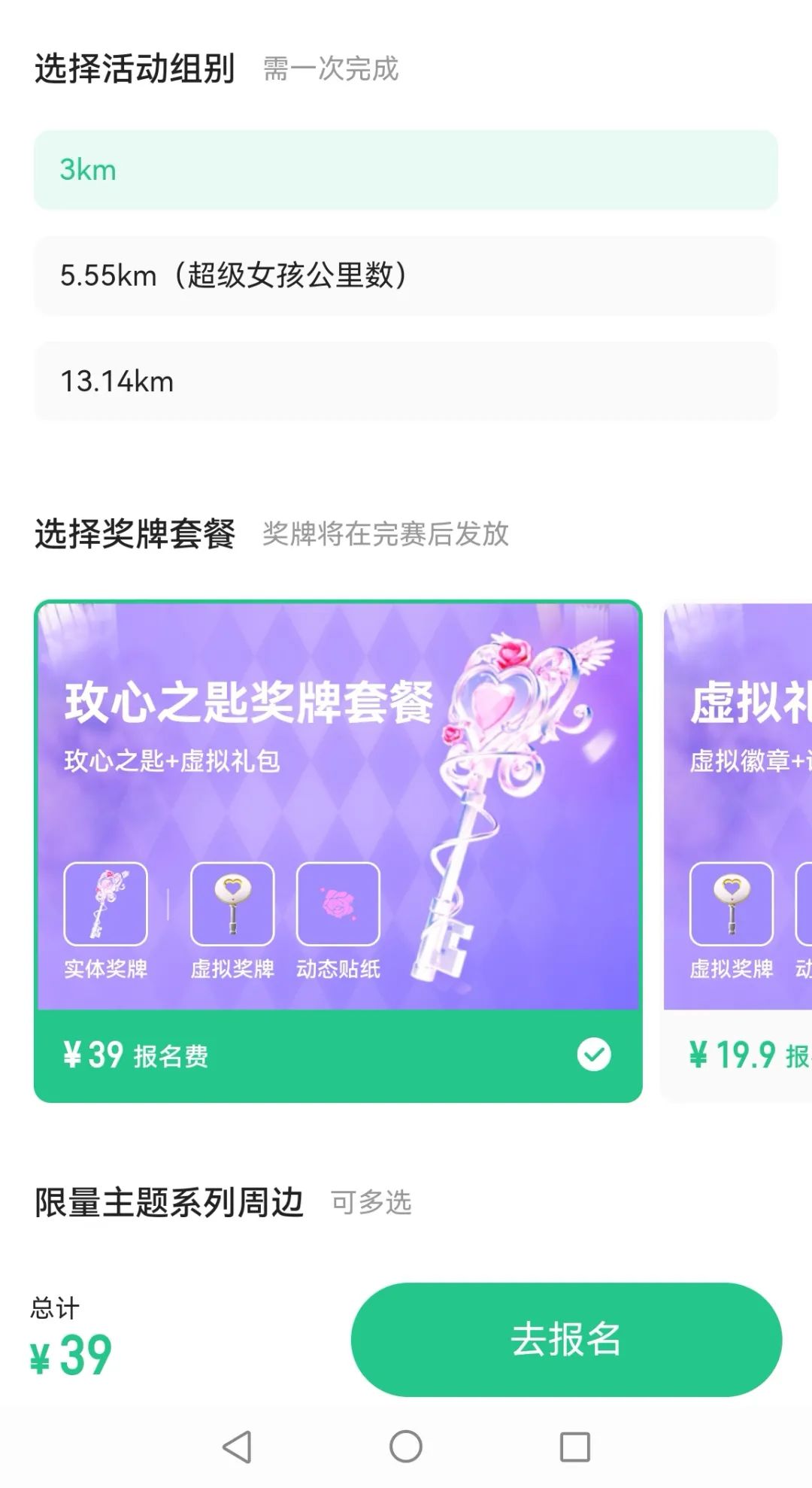 而這次線上跑步的獎(jiǎng)牌,有29元的線上賽事禮包、39元的小天使獎(jiǎng)牌、49元的小天使巧克力獎(jiǎng)牌,以及89元的首飾套餐。