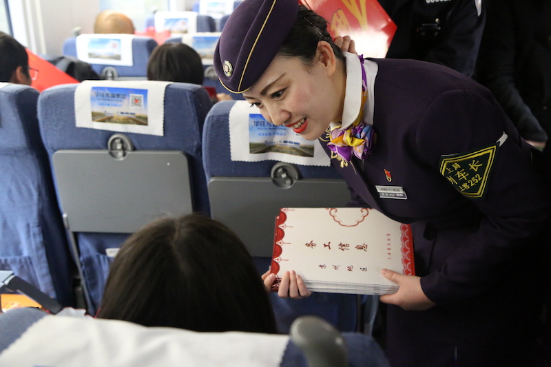 隨著中國高鐵技術(shù)的發(fā)展,列車車廂早已擺脫了“綠皮車”時代悶熱的缺點,更加智能、密閉、人性的設(shè)置給予了乘客更加舒適的乘車環(huán)境。顧蓉工作的車廂隨著中國鐵路的發(fā)展一路“升級”,從T、Z字頭列車,更新為動車組、高鐵。一代鐵路人的足跡開始遍布全國,服務(wù)內(nèi)容也在逐步升級。