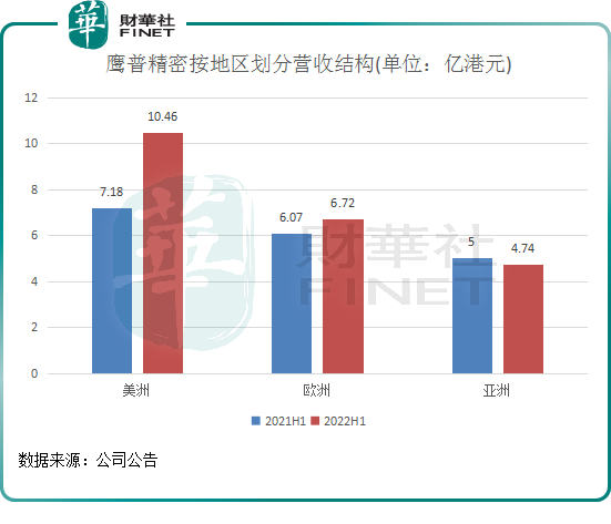 而隨著今年歐美各國(guó)相繼放寬防疫限制,以及美國(guó)大放水搞基建,鷹普精密的海外市場(chǎng)增長(zhǎng)迅猛,大幅抵消了中國(guó)市場(chǎng)面臨的不利局面。報(bào)告期內(nèi),公司來(lái)自美洲的營(yíng)收達(dá)10.46億港元,同比大增45.8%,來(lái)自歐洲市場(chǎng)的營(yíng)收也同比增長(zhǎng)10.8%至6.72億港元。