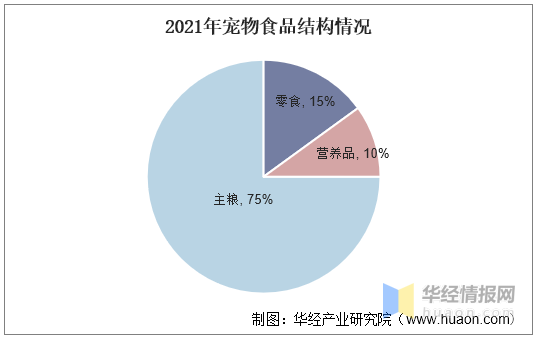 據(jù)統(tǒng)計華經(jīng)產(chǎn)業(yè)研究院,2021年三者占寵物食品比例分別為75%、15%和10%。