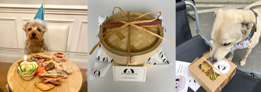 每個barkuterie board都是按照訂單為寵物定制而成,完全拿捏狗狗們對食物的偏好和敏感度。barkuterie board里既可以包括肉干、水果和奶酪等美食,還搭配了由The Dog Bakery制作的狗狗專用零食,如Bark花生醬茶三明治、奶酪餅干和帶有狗名的定制骨頭。