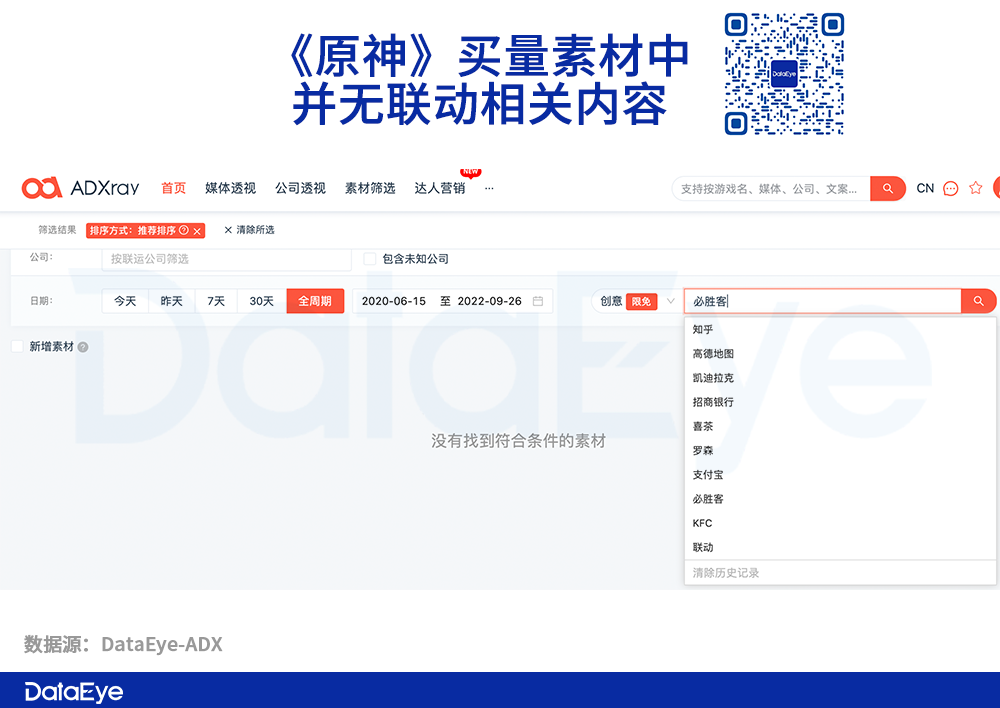 DataEye-ADX的創(chuàng)意搜索功能,并沒有搜出“聯(lián)動”、“必勝客”、“支付寶”等內(nèi)容。反而是3.0版本“千朵玫瑰帶來的黎明”相關(guān)素材較多。作為對比,《幻塔》等二次元游戲聯(lián)動期間,往往同時投入相關(guān)素材進行買量。