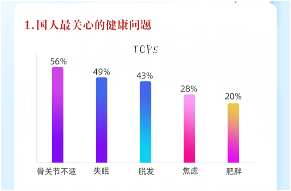 根據(jù)阿里健康研究院發(fā)布的《2021骨關(guān)節(jié)健康洞察報(bào)告》顯示,骨關(guān)節(jié)問(wèn)題已超越失眠、脫發(fā),成為困擾國(guó)民健康的十大問(wèn)題之首。