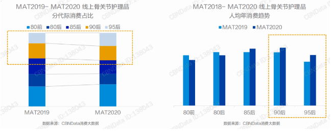 在“人人護(hù)關(guān)節(jié)”的大潮中,年輕人看似不相關(guān),但其實(shí)20來(lái)歲就得痛風(fēng)、關(guān)節(jié)炎的年輕人不少見。數(shù)據(jù)顯示,年輕人群在線上骨關(guān)節(jié)護(hù)理市場(chǎng)擁有著更強(qiáng)的購(gòu)買力。數(shù)據(jù)顯示,90后、95后已經(jīng)紛紛加入關(guān)節(jié)護(hù)理大軍,線上消費(fèi)占比占整體人群四成,其中90后人群最舍得花錢,在各個(gè)代際人群消費(fèi)最高;95后為骨骼關(guān)節(jié)健康投資的意識(shí)上升最快,消費(fèi)升級(jí)速度較其他年齡層人群更快。整體市場(chǎng)尚未飽和,存在巨大潛力。