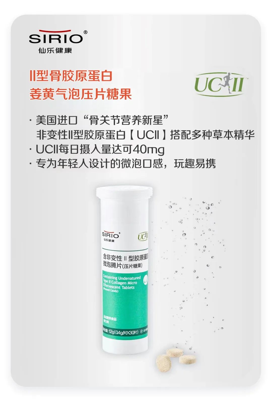在這樣的訴求下,諸如膠原蛋白、姜黃等具備多效功能的超級(jí)成分更受年輕人青睞。仙樂(lè)健康為運(yùn)動(dòng)人士提供的專業(yè)解決方案II型骨膠原蛋白姜黃氣泡壓片糖果,綜合了專業(yè)性和多效性。選用支持細(xì)胞再生的骨關(guān)節(jié)營(yíng)養(yǎng)新星非變性膠原蛋白UCII搭配姜黃、葛根等草本精華組合成的產(chǎn)品,助力運(yùn)動(dòng)場(chǎng)景下的骨骼關(guān)節(jié)呵護(hù);在劑型設(shè)計(jì)上,仙樂(lè)健康也緊扣年輕及運(yùn)動(dòng)人士的使用需求,采用具有微泡口感的片劑劑型,小瓶包裝,便于運(yùn)動(dòng)人群日常攜帶。