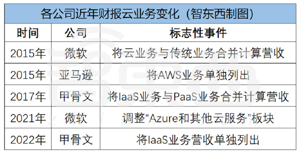 云業(yè)務營收計算方式的頻繁變動,揭示了巨頭們在云計算業(yè)務上的跌宕起伏。