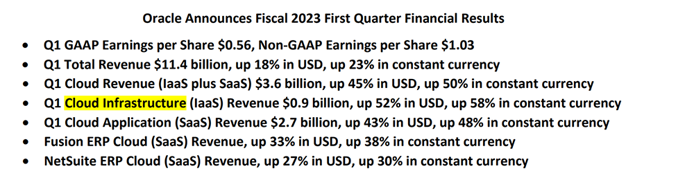 本月,數(shù)據(jù)庫巨頭甲骨文發(fā)布了2023財年第一季度的財報,將IaaS(基礎設施即服務)營收單獨列出。甲骨文云計算業(yè)務的營收劃分方式,又變了。