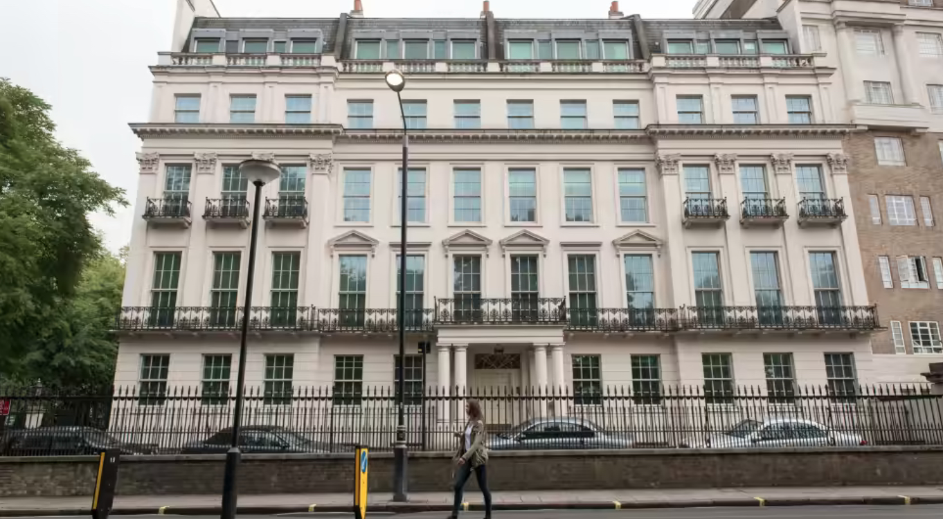 該超級豪宅位于倫敦市中心黃金地段——騎士橋Kensington Gardens南部,屬于倫敦超級豪宅交易的首選地點之一。建筑建于1830年代,共七層,居住面積比美式橄欖球場略大,約6.2萬平方英尺,能俯瞰海德海德公園,有45間臥室。