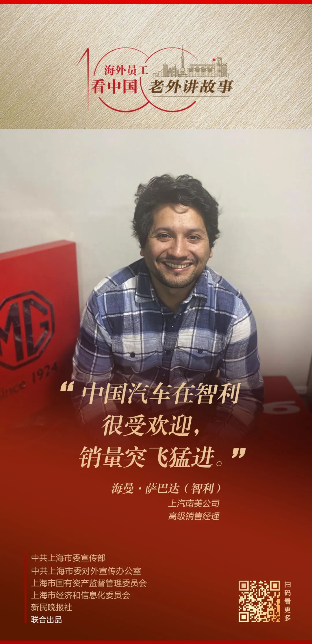 身為汽車從業(yè)者,海曼·薩巴達見證了中國汽車在智利飛速發(fā)展的黃金時代。他從專員成長為經(jīng)理、高級經(jīng)理,從一開始對于汽車知識并不是非常了解,到現(xiàn)在可以獨當(dāng)一面,不光做銷售,還負責(zé)物流運營等?!霸谖覀兒芏嘀抢搜劾?,上汽是和美國公司、歐洲公司一樣的國際性公司?!?/p>