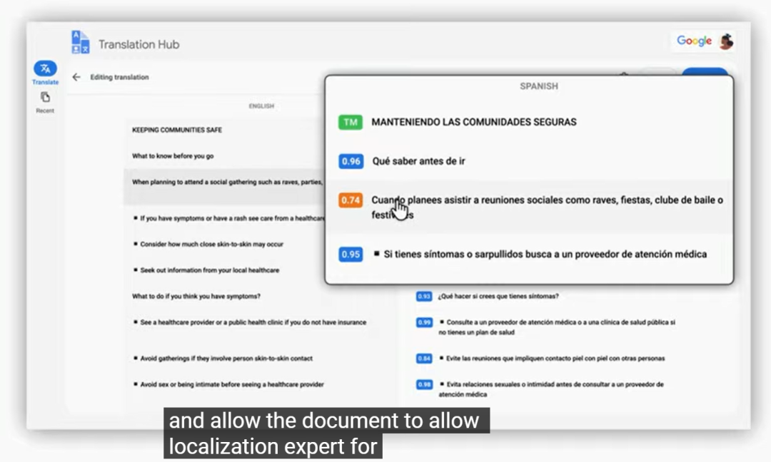 Translation Hub結(jié)合了神經(jīng)機(jī)器翻譯和AutoML等谷歌技術(shù),可以翻譯135種語言的文檔,支持Google Docs、Slides、PDF和Microsoft Word等多種形式?!八粌H保留了布局和格式,還提供了精細(xì)的管理控制,例如支持后期編輯的人反饋和文檔審查?!惫雀柙艫I和行業(yè)解決方案副總裁June Yang說。