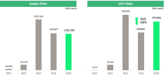 財報顯示,WEMIX錢包目前MAU(月活)達到130萬,相較于Q1季度輕微下滑;WEMIX DEX(交易所)的MAU為80萬,較Q1上漲29%。其實這樣的數(shù)據還是挺尷尬的,并不亮眼。