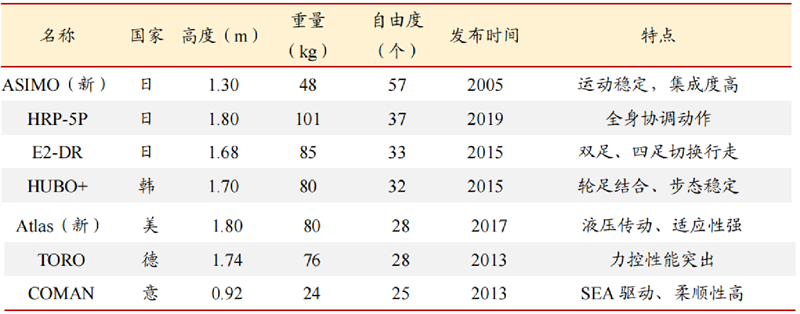日韓在人形機(jī)器人研究領(lǐng)域表現(xiàn)活躍,日本本田代表產(chǎn)品 Asimo 身高 1.3m,體重 48kg,具有 57 個(gè)自由度,可完成上下樓和奔跑等動(dòng)作。韓國(guó)