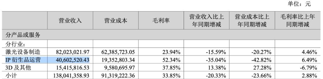 金運激光旗下有IP衍生品運營業(yè)務(wù)(品牌“IP小站”)。