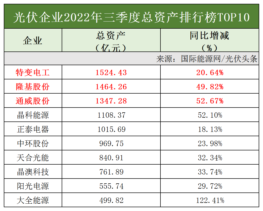 總資產(chǎn)方面,92家企業(yè)總資產(chǎn)合計(jì)18776.56億元,超過千億元的企業(yè)依次為特變電工、隆基股份、通威股份、晶科能源、正泰電器,這五家企業(yè)合計(jì)總資產(chǎn)6460.03億元,占比為34.4%。